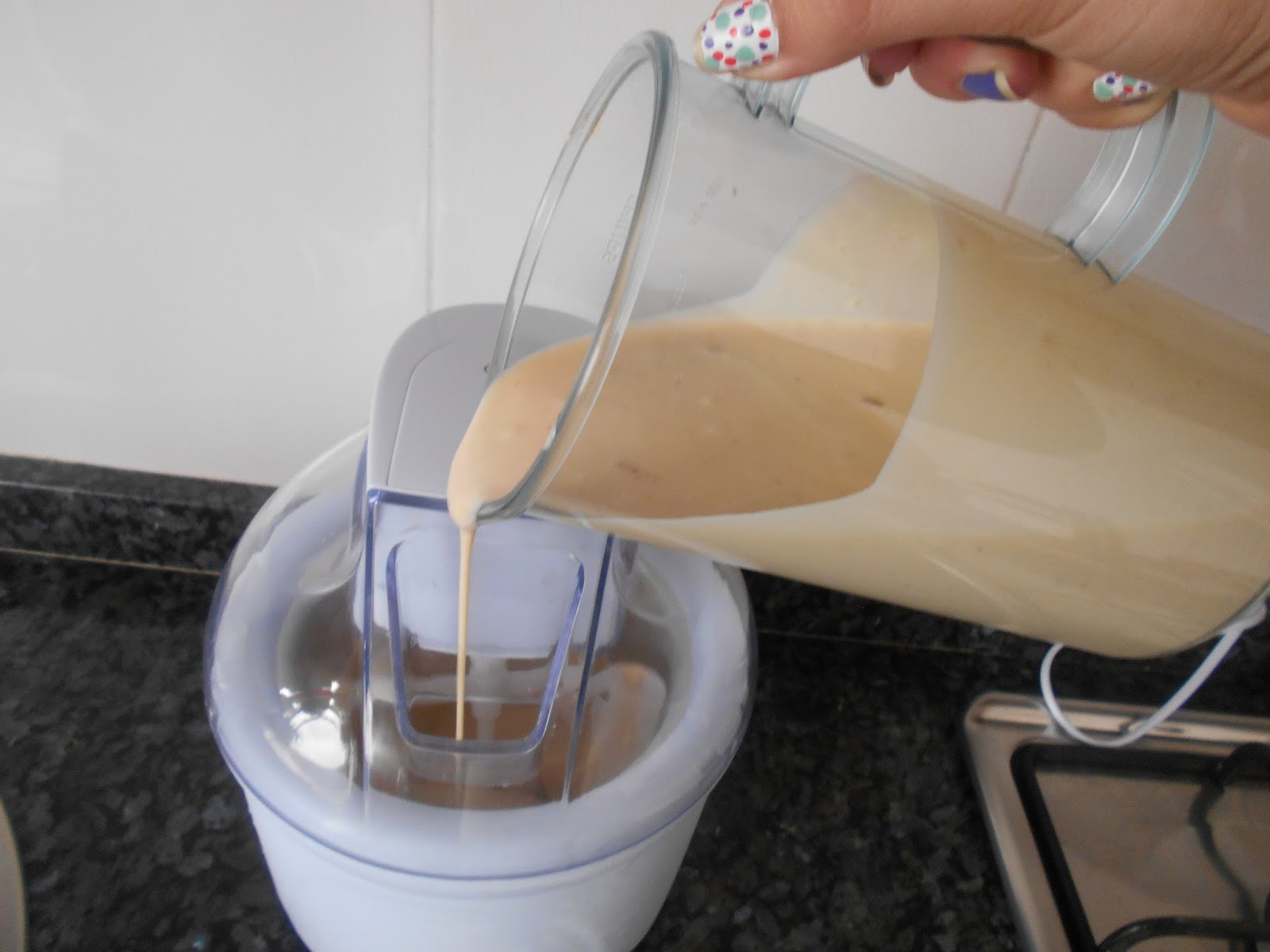 Una vez tengamos bien fria la mezcla en la nevera, la pasamos aun recipiente y la metemos en el congelador.