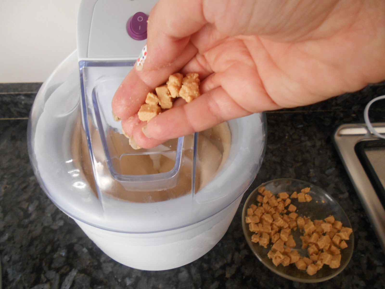 Sacaremos la mezcla y añadiremos los tropezones de turron, y cada 30min durante 3 o 4 horas la removeremos con las varillas para evitar que se formen cristales y quede un helado cremoso.