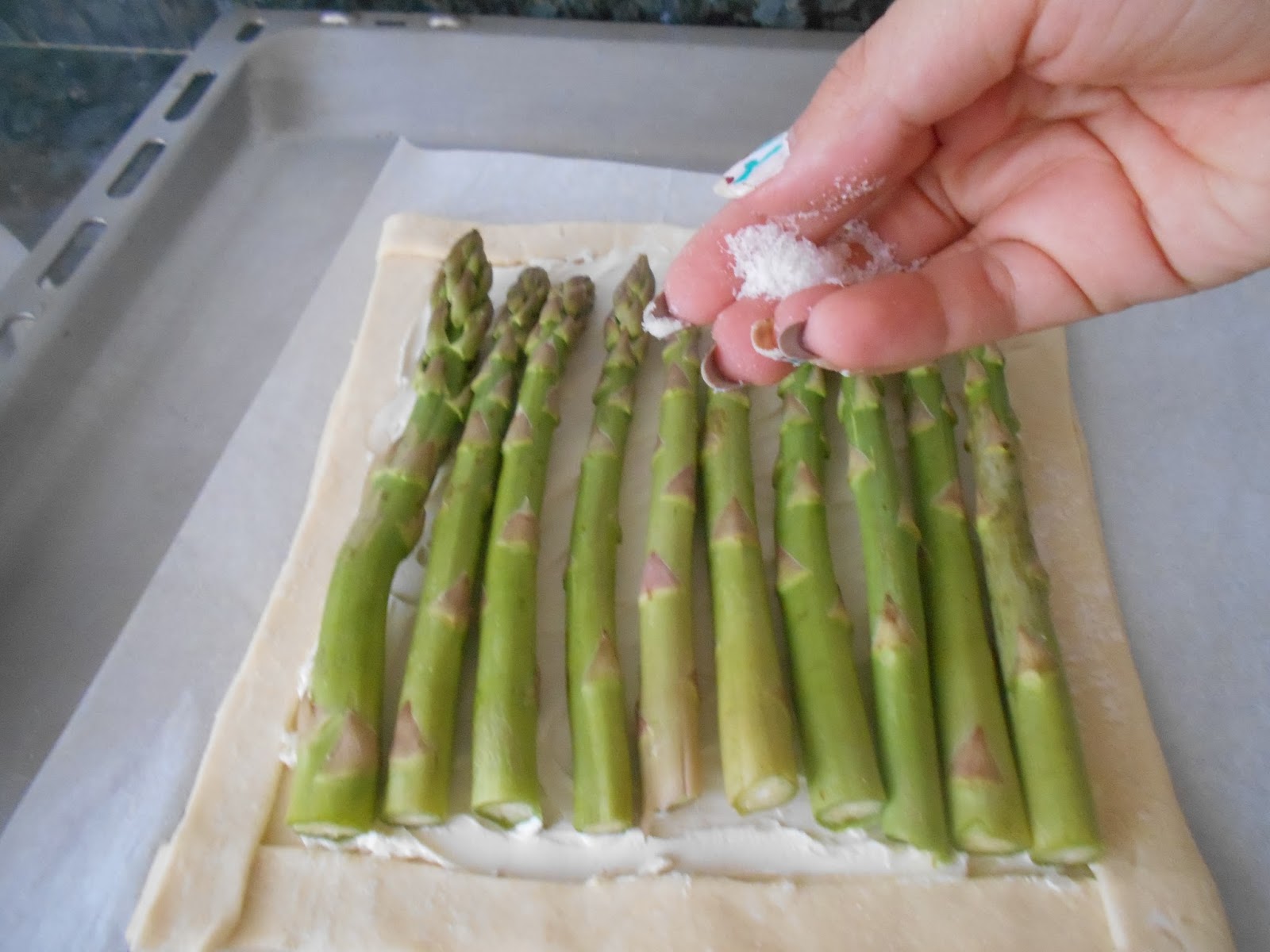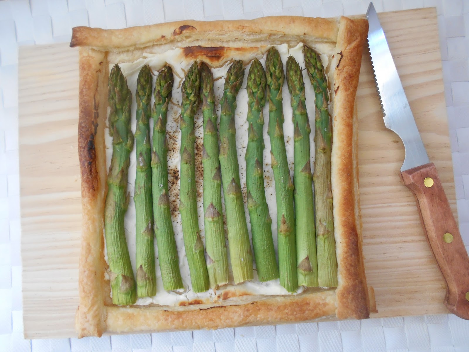 El hojaldre con los esparragos y el queso es una combinacion perfecta.