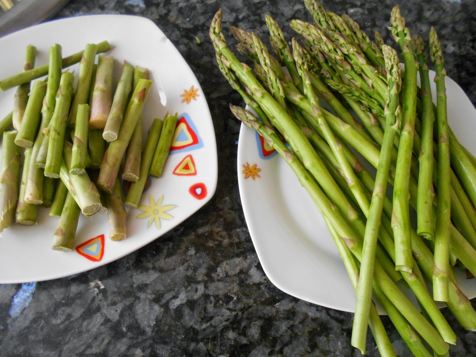 Nos reservamos las raices de los esparragos, para ello basta con coger el esparrago y doblarlo hasta que se rompa por si mismo.