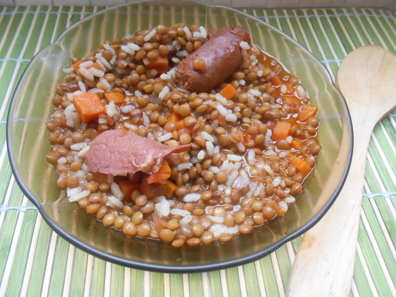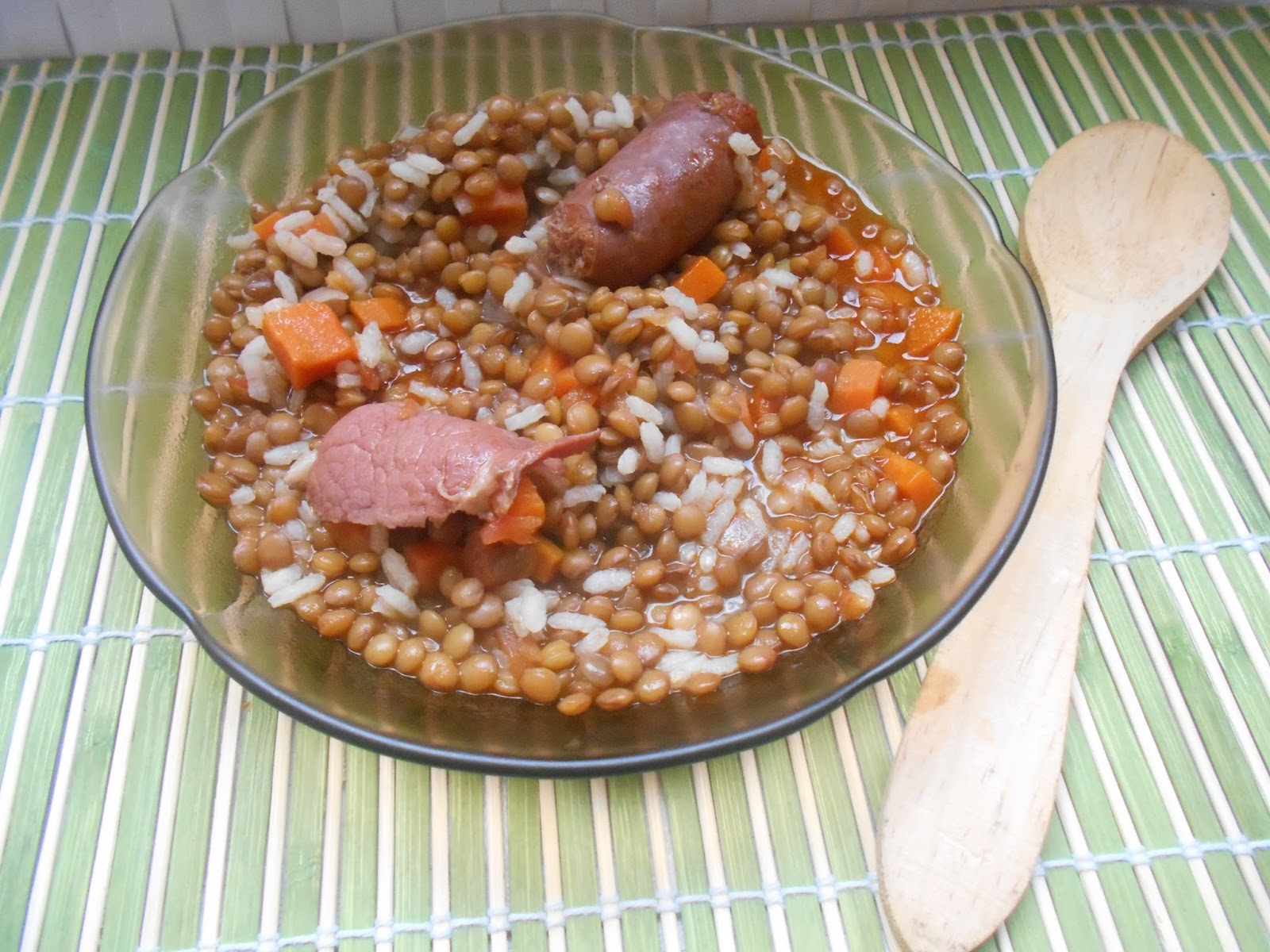 Lentejas con arroz una de las recetas más tradicionales y conocidas por todos.