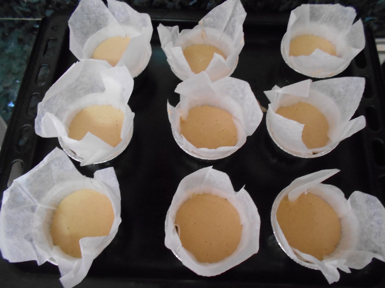 Vertemos la mezcla en las capsulas, que como os decia he hecho yo misma para que tuvieran un aspecto más rustico.