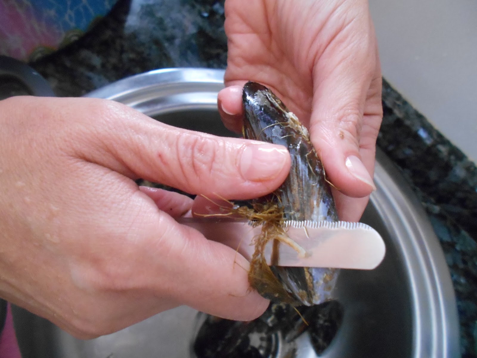 Lo primero un consejo a la hora de selccionar lo mejillones no os guieis por que sea la cascara más o menos grande, sino, que en proporcion noteis que pesan. Asi seguro escogeremos los más gordos.