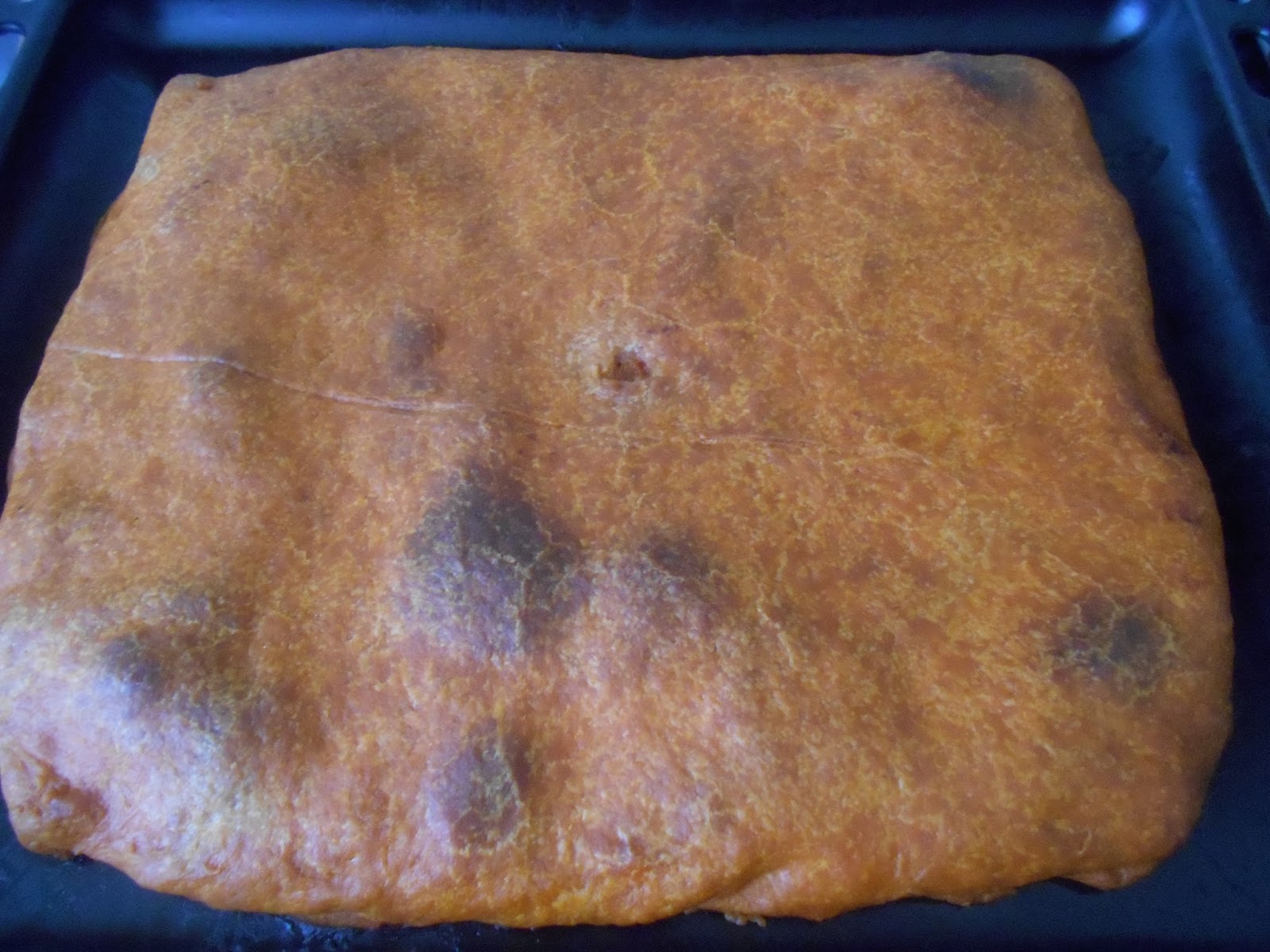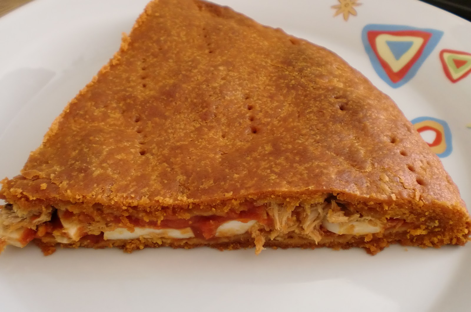 Tapar con la otra parte de la masa, sellar bien los bordes y pintar con huevo. Llevar a horno a 180º C hasta que la masa este dorada.