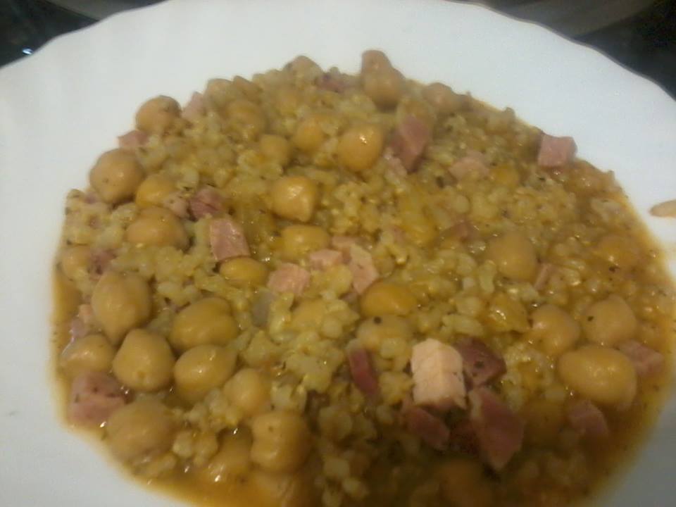 Pues os dejo para que disfruteis, la foto del potaje de garbanzos y arroz a la hierbabuena caseros que preparó