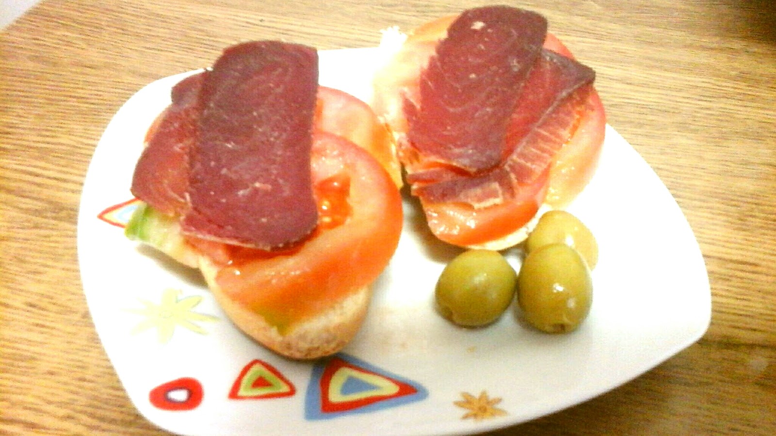 Hoy os traigo esta receta tan, tan sencilla. Un montadito de mojama con tomate.
