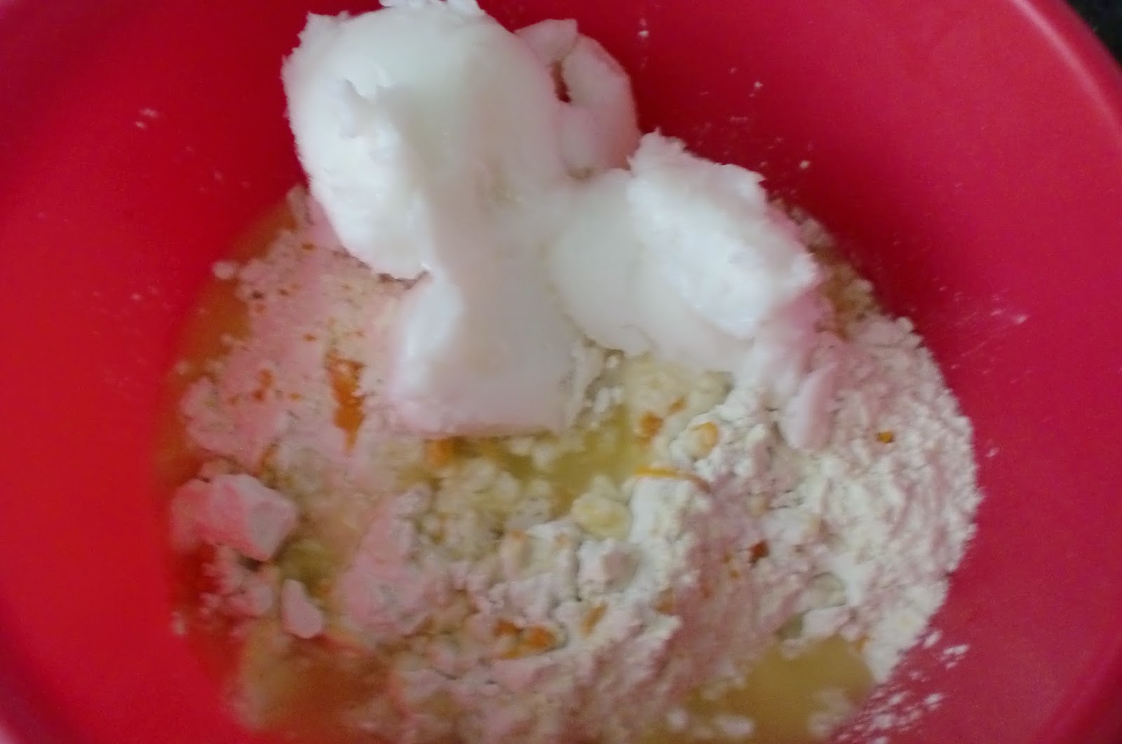 Calentamos 30segundos la manteca en el microondas  Echamos todo en un cuenco