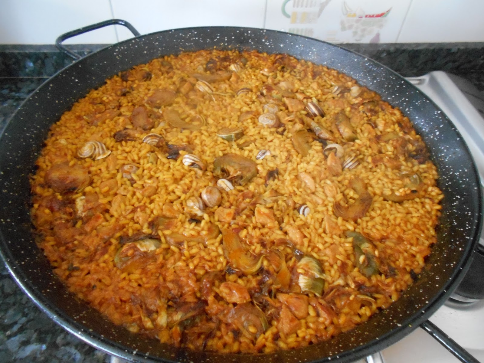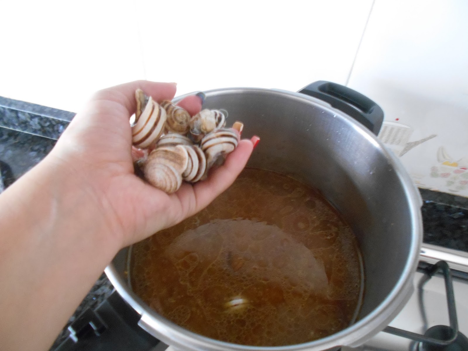 vertemos el caldo de la coccion de la magra con los caracoles. Sazonamos y condimentamos con las especias.