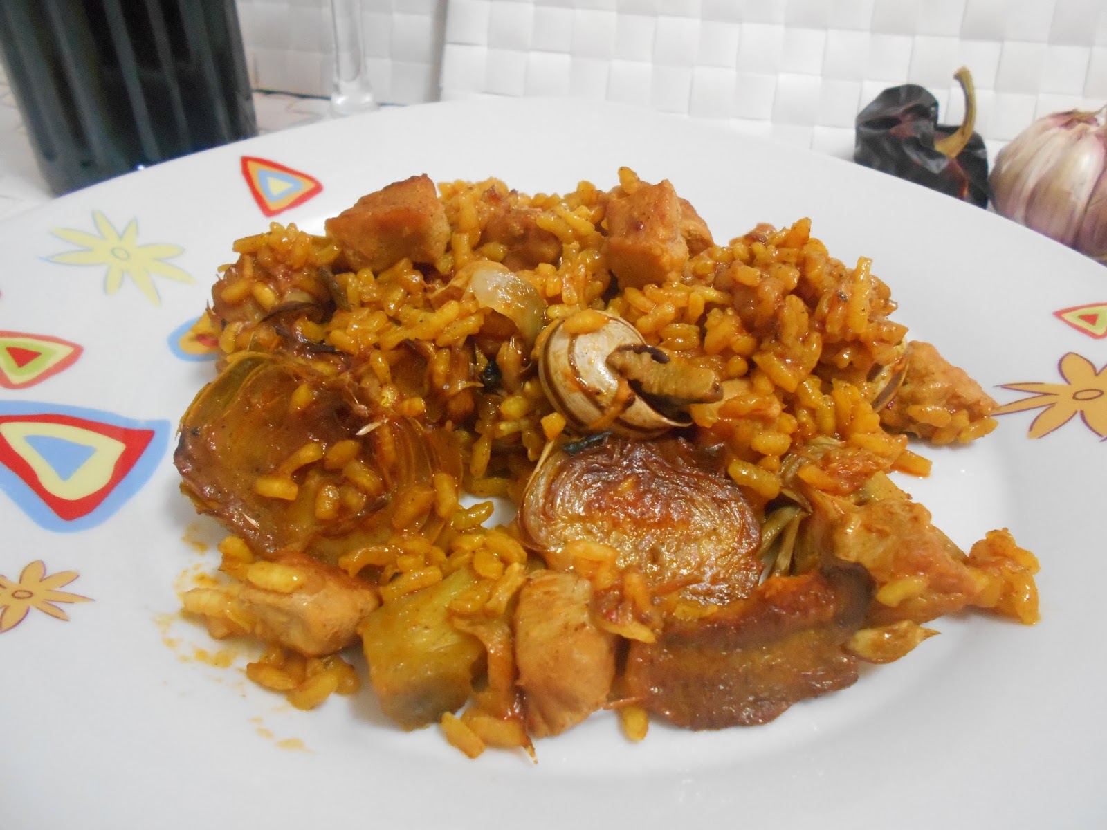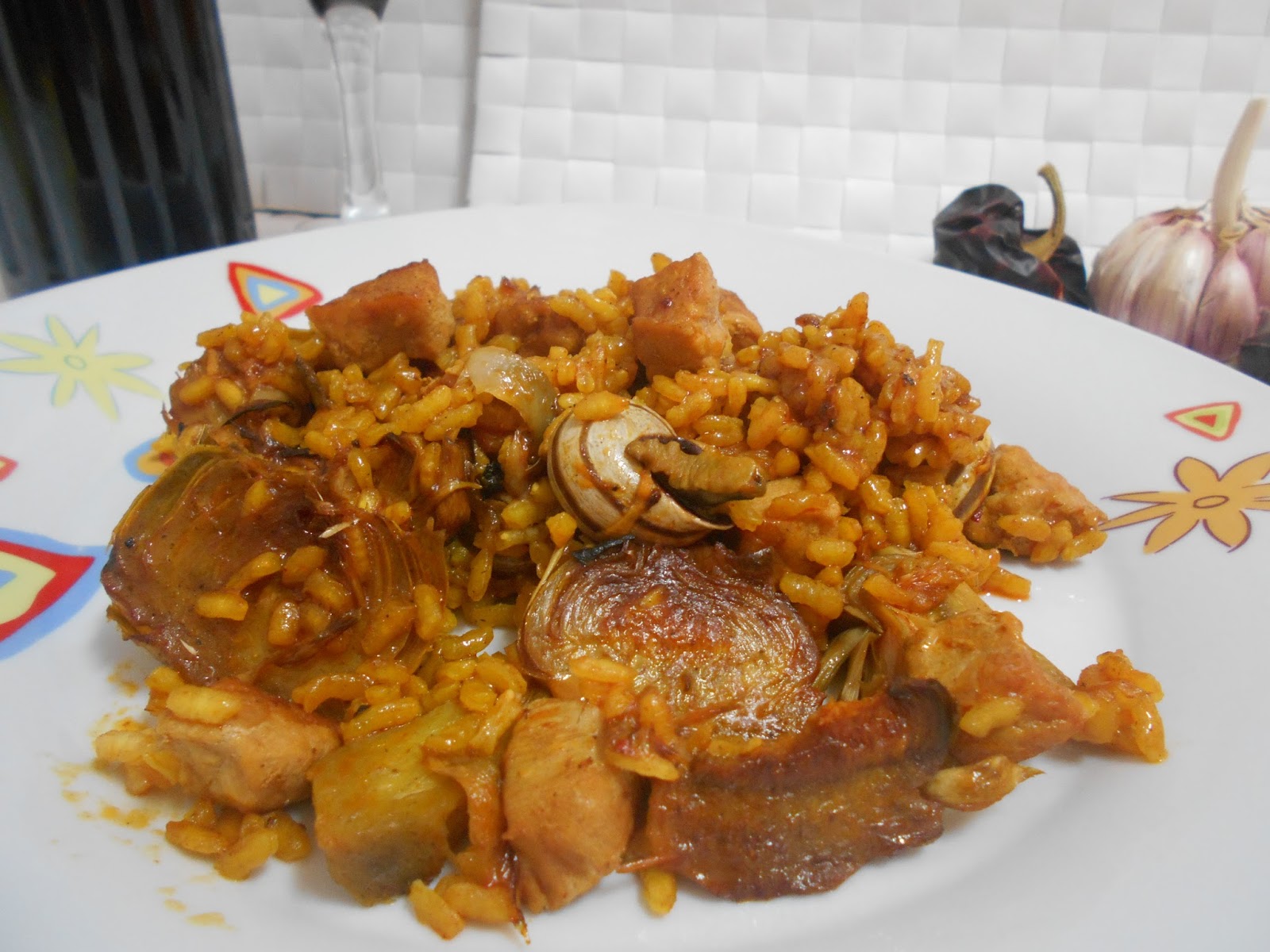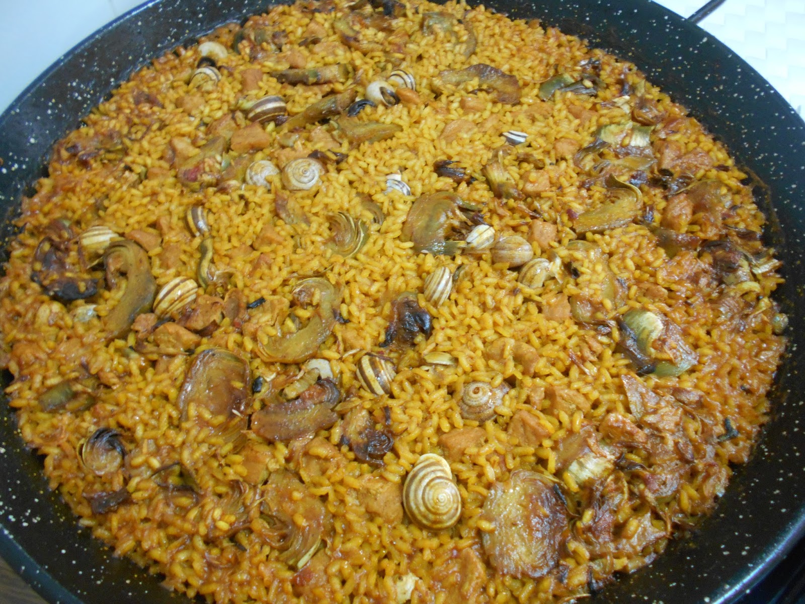Añadimos la magra y los caracoles.