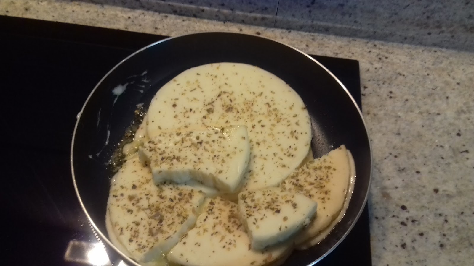 En una sarten con un poco de aceite ponemos a fundir los 2 trozos de queso provolone