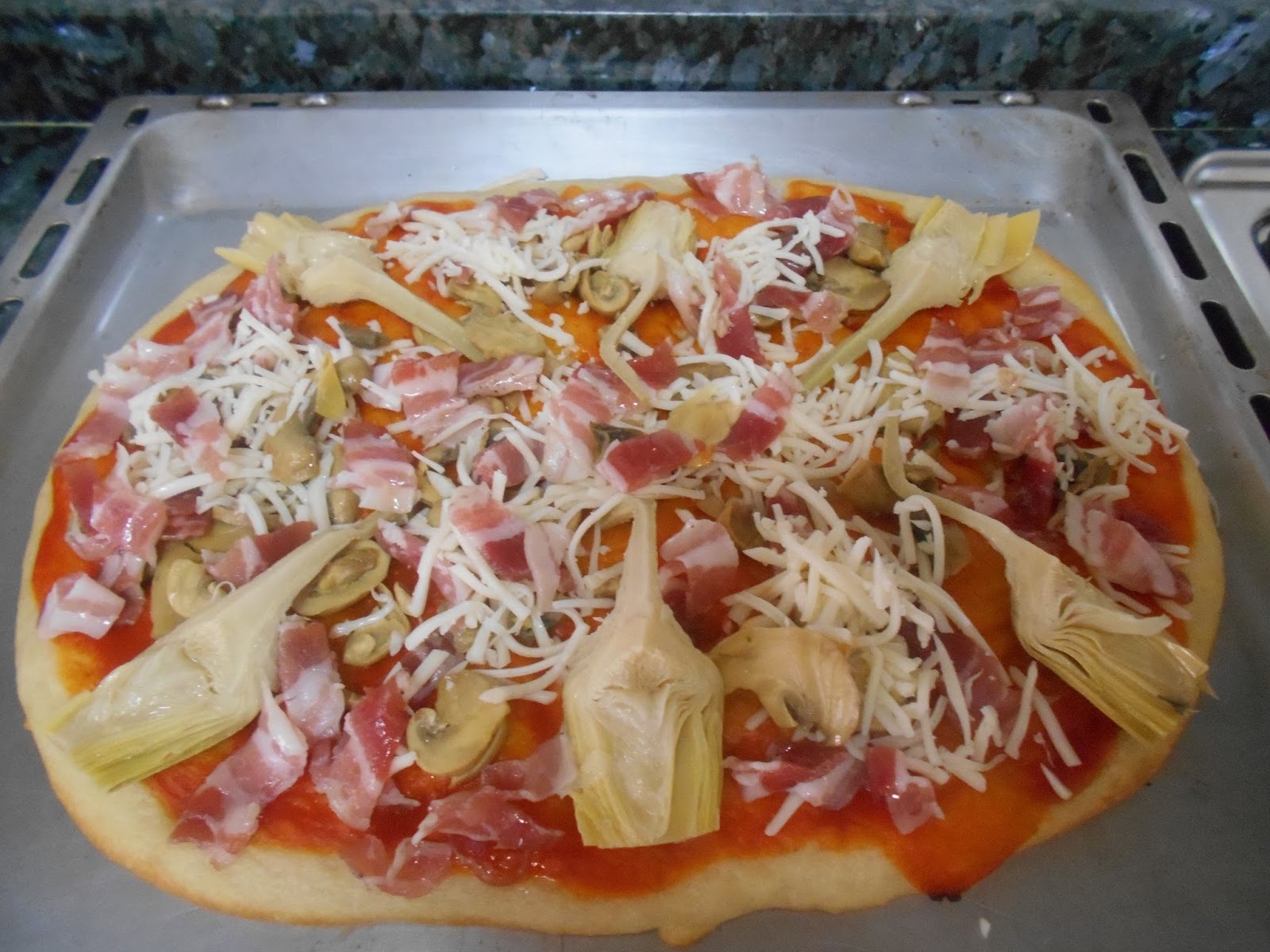 PIZZAS DE ATUN, BACON, ALCACHOFAS Y CHAMPIÑONES