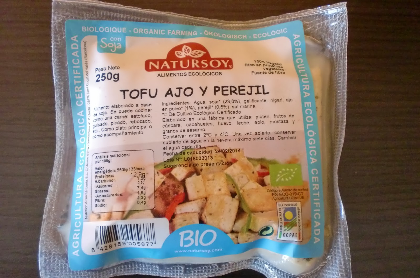 Tofu con ajo y perejil: ya habia comido anteriormente tofu de otras marcas y me parecia que no tenian mucho sabor, pero este me gusto y mucho, ademas creo que el toque de ajo y perejil y es un gran acierto.