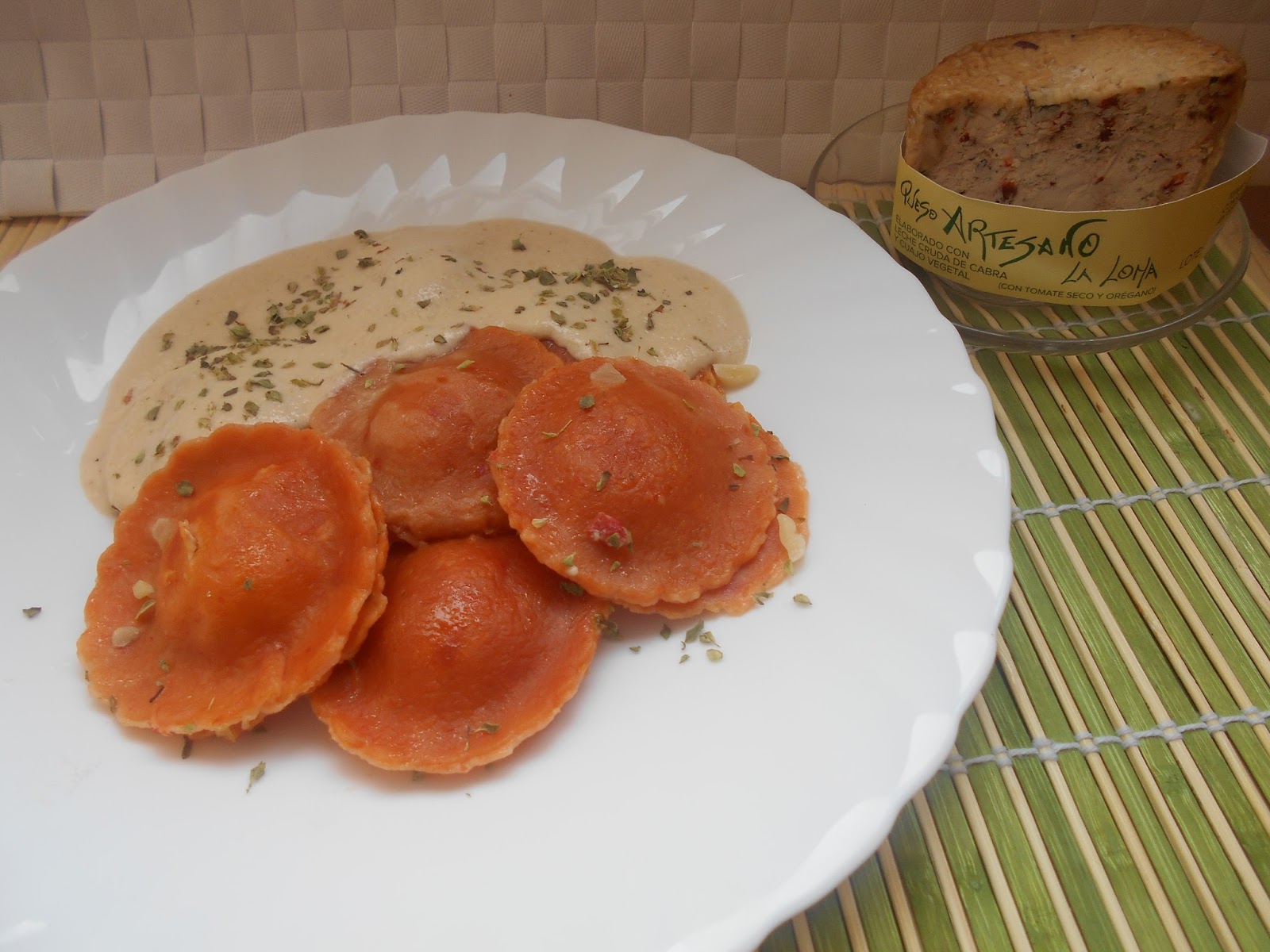 Hoy os traigo un recetón unos raviolis de pasta casera de tomates secos rellenos de queso artesano LA LOMA de tomate y oregano, simplemente espectaculares.