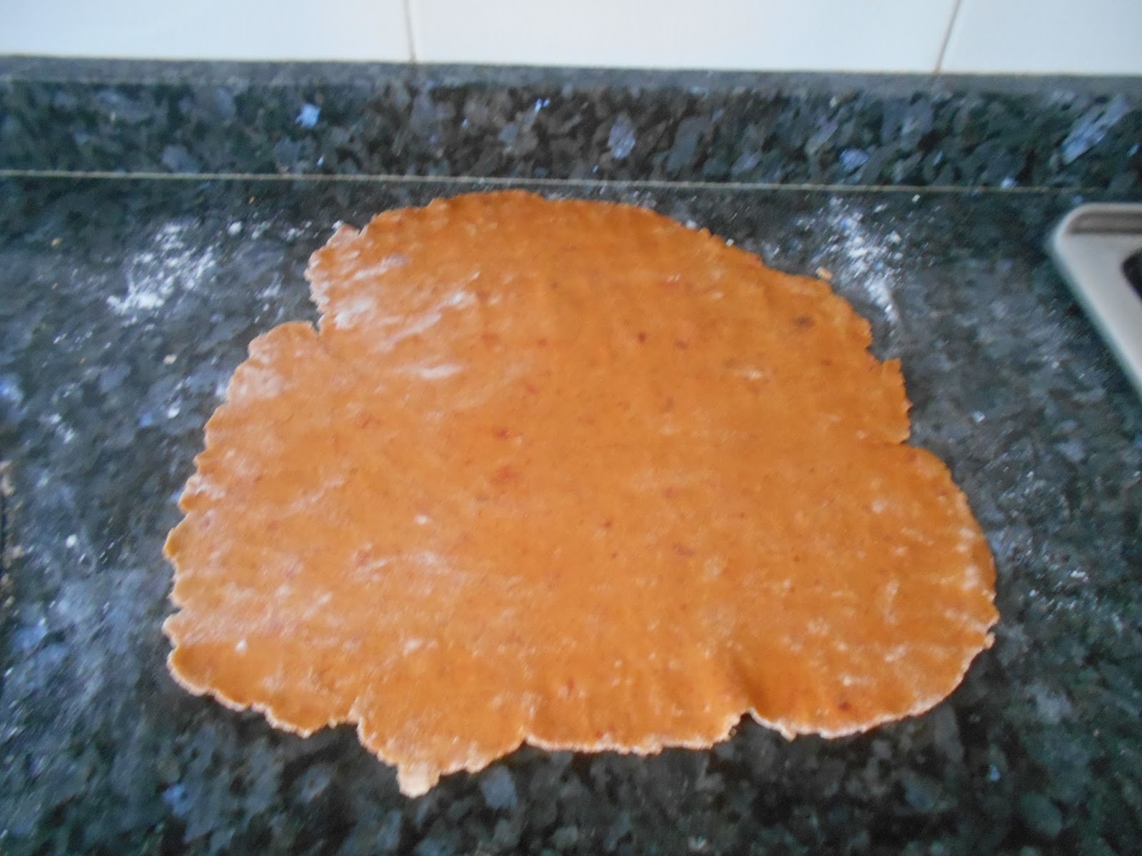 Extendemos la masa en una superficie enharinada. Ha de quedar muy muy fina.