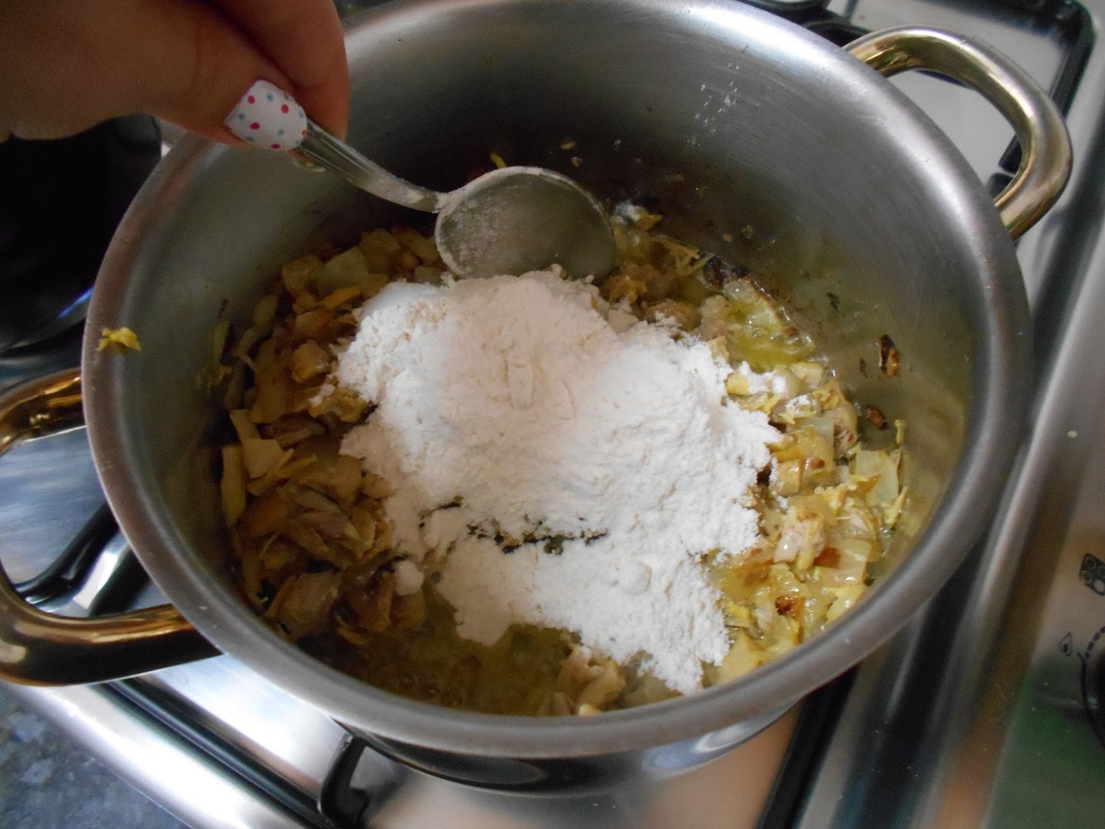 Vamos añadiendo leche poco a poco hasta lograr una consistencia de bechamel densa.