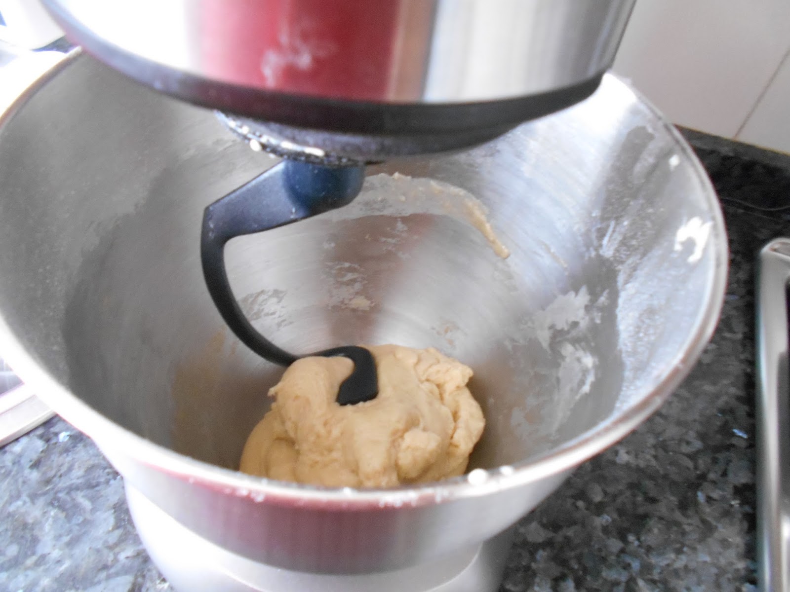 Se puede hacer a mano perfectamente, pero aprovechando que tengo amasadora (me la autoregale jejeje) pues la voy a hacer con la maquina. Cuando la masa se despegue de las paredes, esta lista. Si lo haceis a mano en cuanto la noteis que ya no esta pegajosa y tiene una textura lisa y elastica.