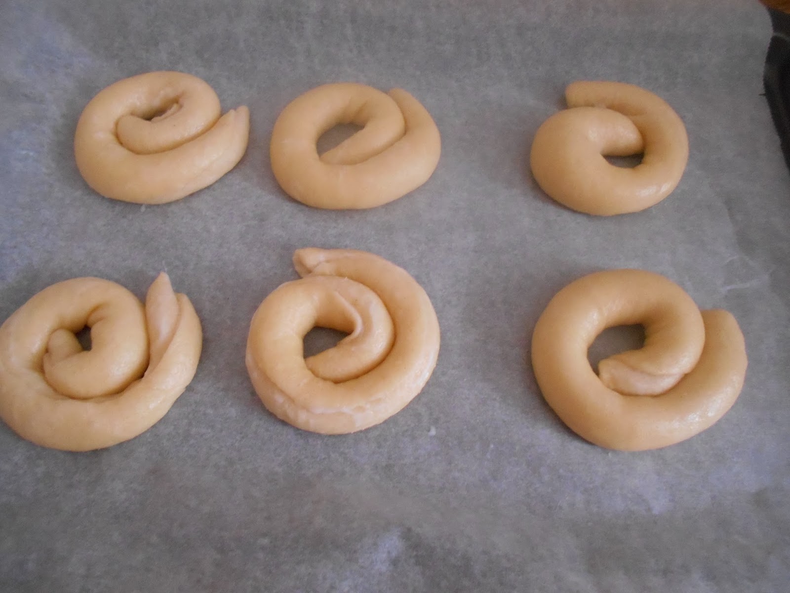 Disponemos en las bandejas de horno con papel de hornear. Dejamos reposar hasta que doblen de tamaño.