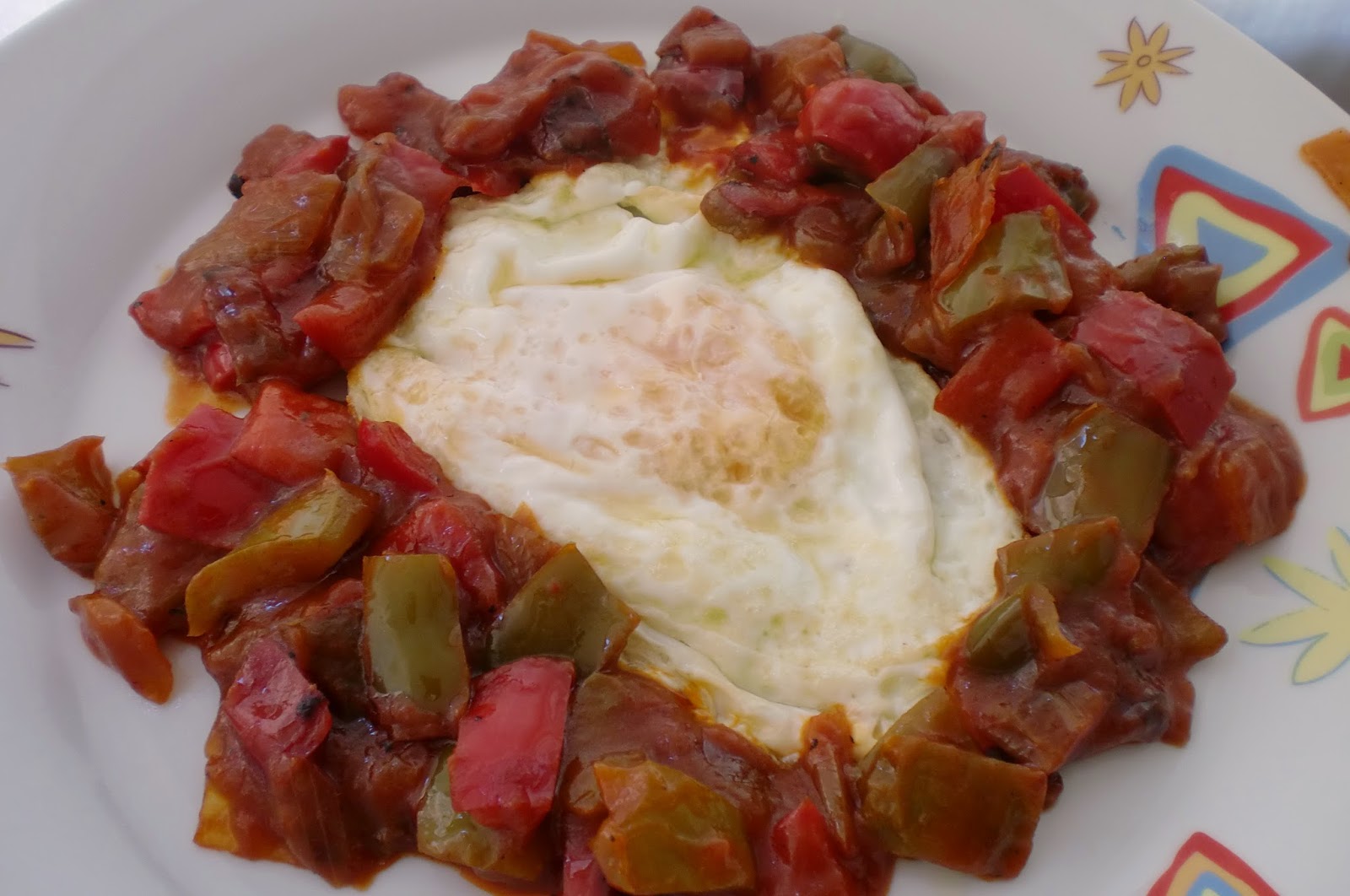 Me encanta el pisto con un oar de huevos fritos y su jamon uuuf