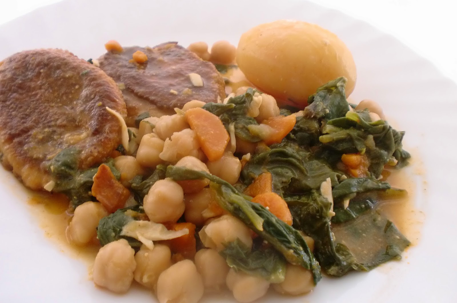 Hoy quiero compartir con vosotros esta receta tradicional de potaje de garbanzos, porque pienso que se trata de un plato sano, con muchas posibilidades, muy rico y muy barato, cosa que, con los tiempos que corren se agradece. Además se trata de un plato vegetariano. Es una receta estupenda porque no lleva nada de grasa