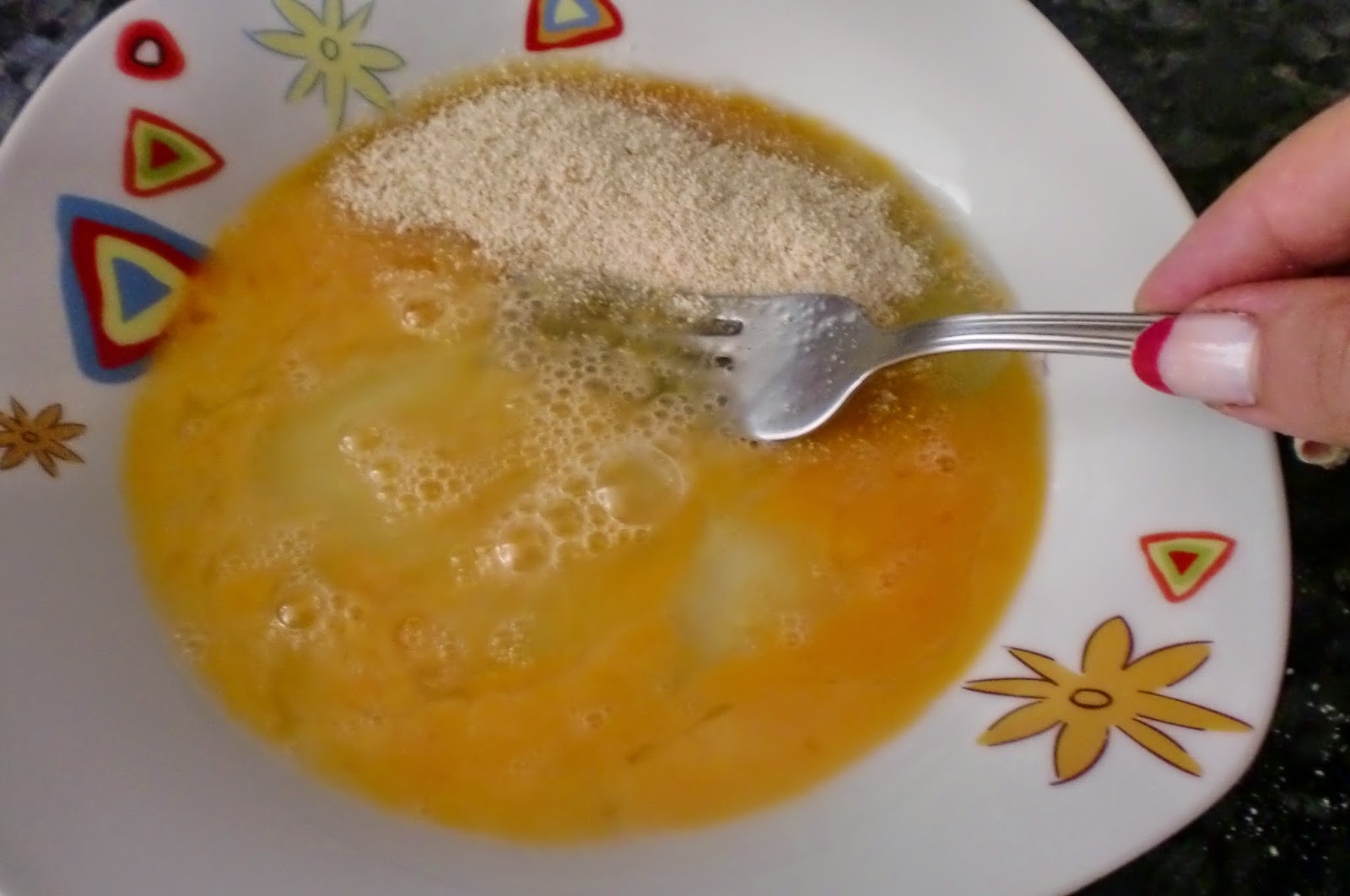 Hacemos nuestras «pelotas» (que es algo típico manchego) para ello batimos los dos huevos y vamos añadiendo pan rallado hasta que nos quede una masa esponjosa pero no SECA, como un pure.