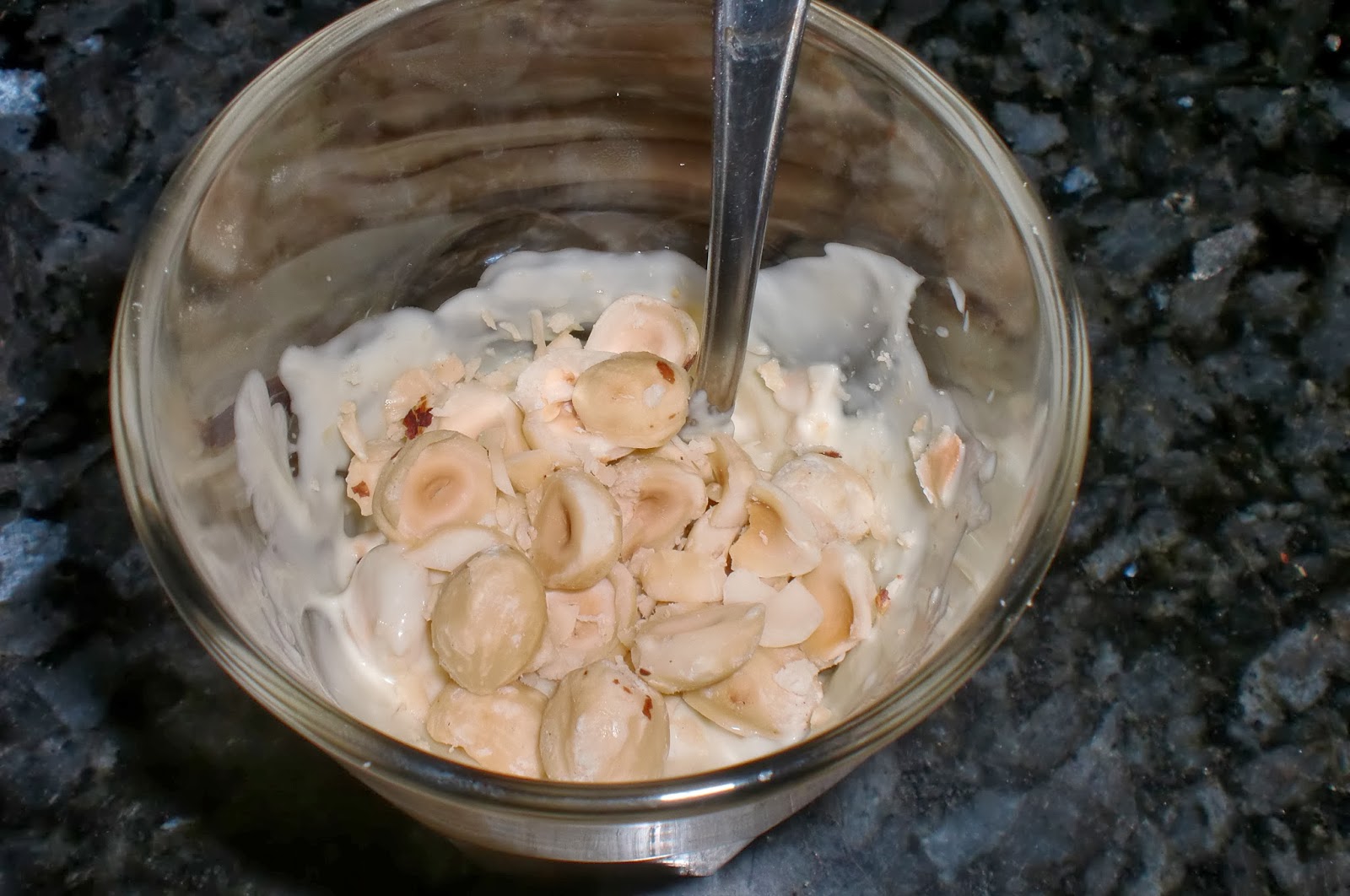 Mezclamos el chocolate con el fruto seco.
