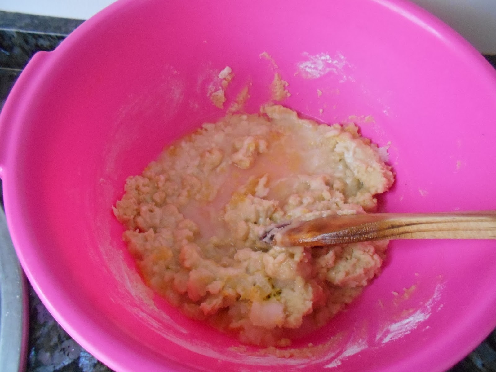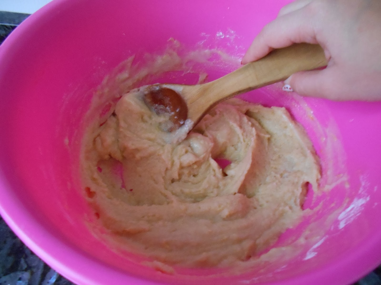 amasamos todo bien con la cuchara hasta que la masa no se pegue.