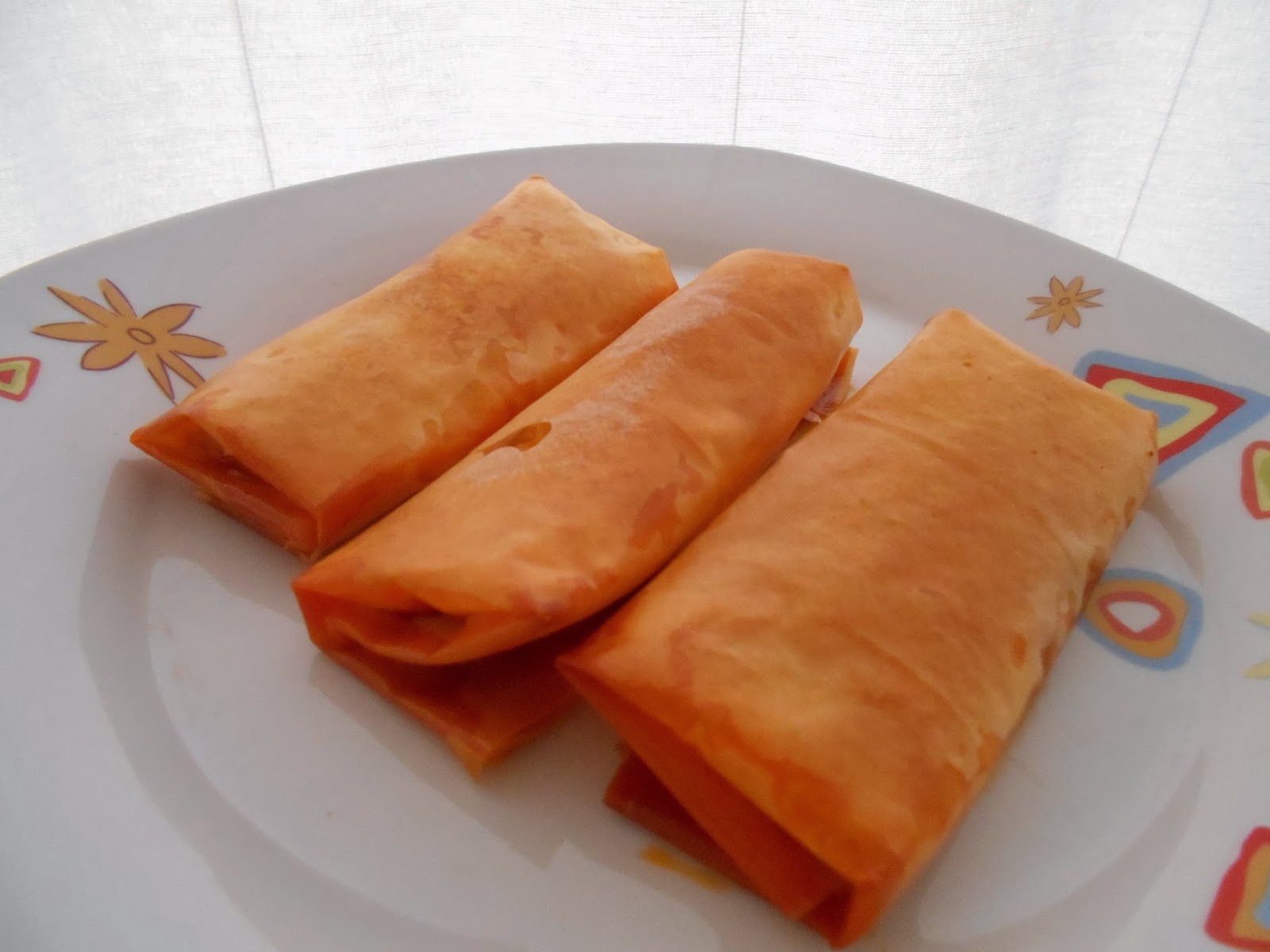 listos!!! asi de fáciles son estos rollitos de queso y sobrasada con pasta filo.