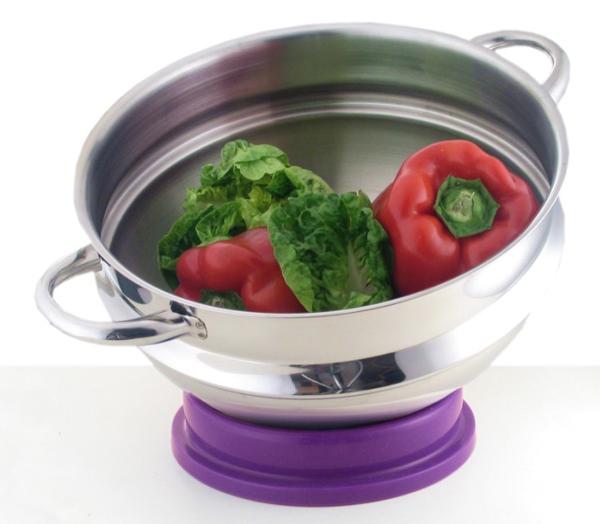 La silicona aplicada a los utensilios de cocina nos ha aportado muchas comodidades, como sucede con este soporte para bol.