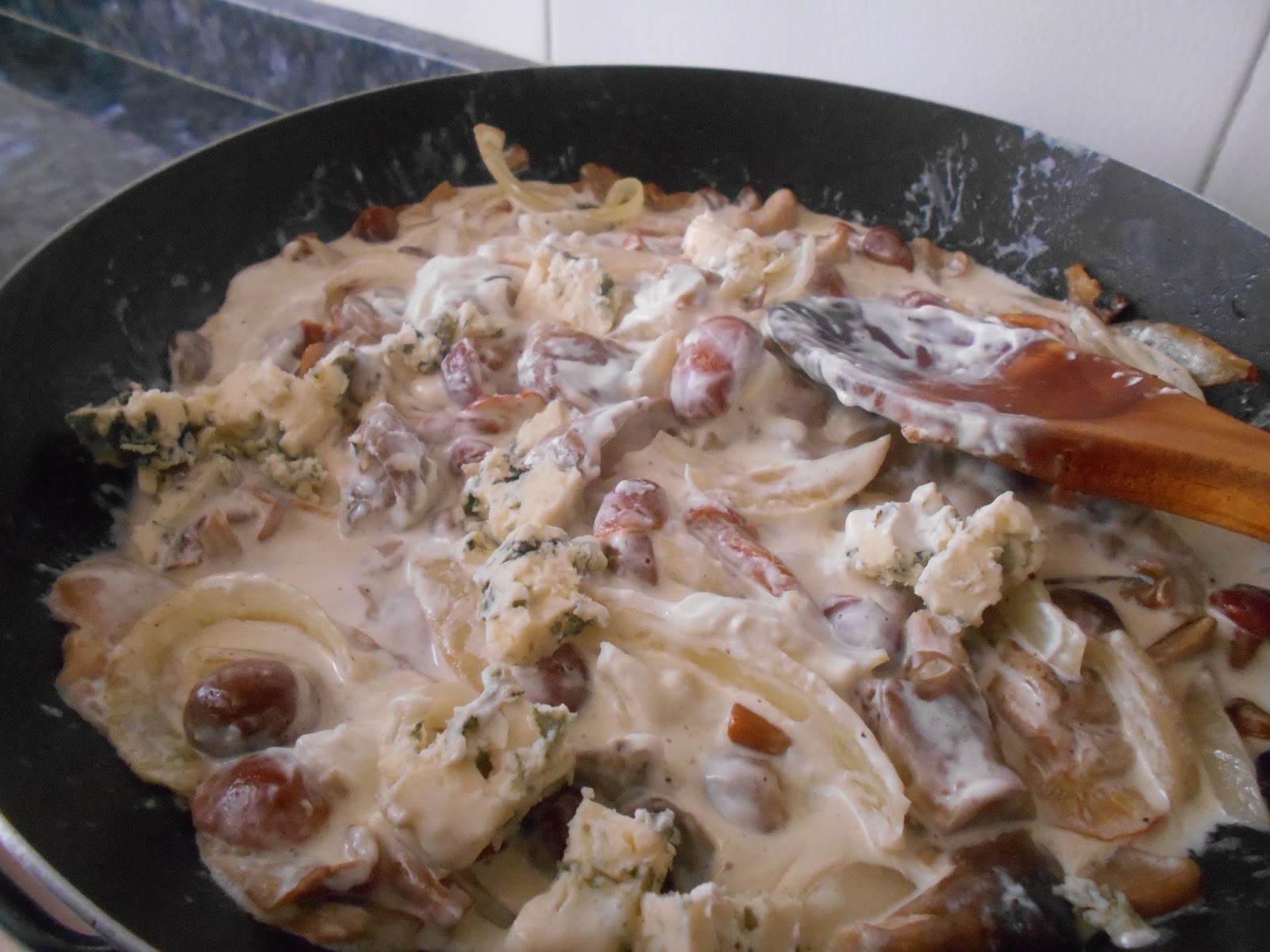 Lista nuestra pasta con setas y roquefort. ¿que os parece?