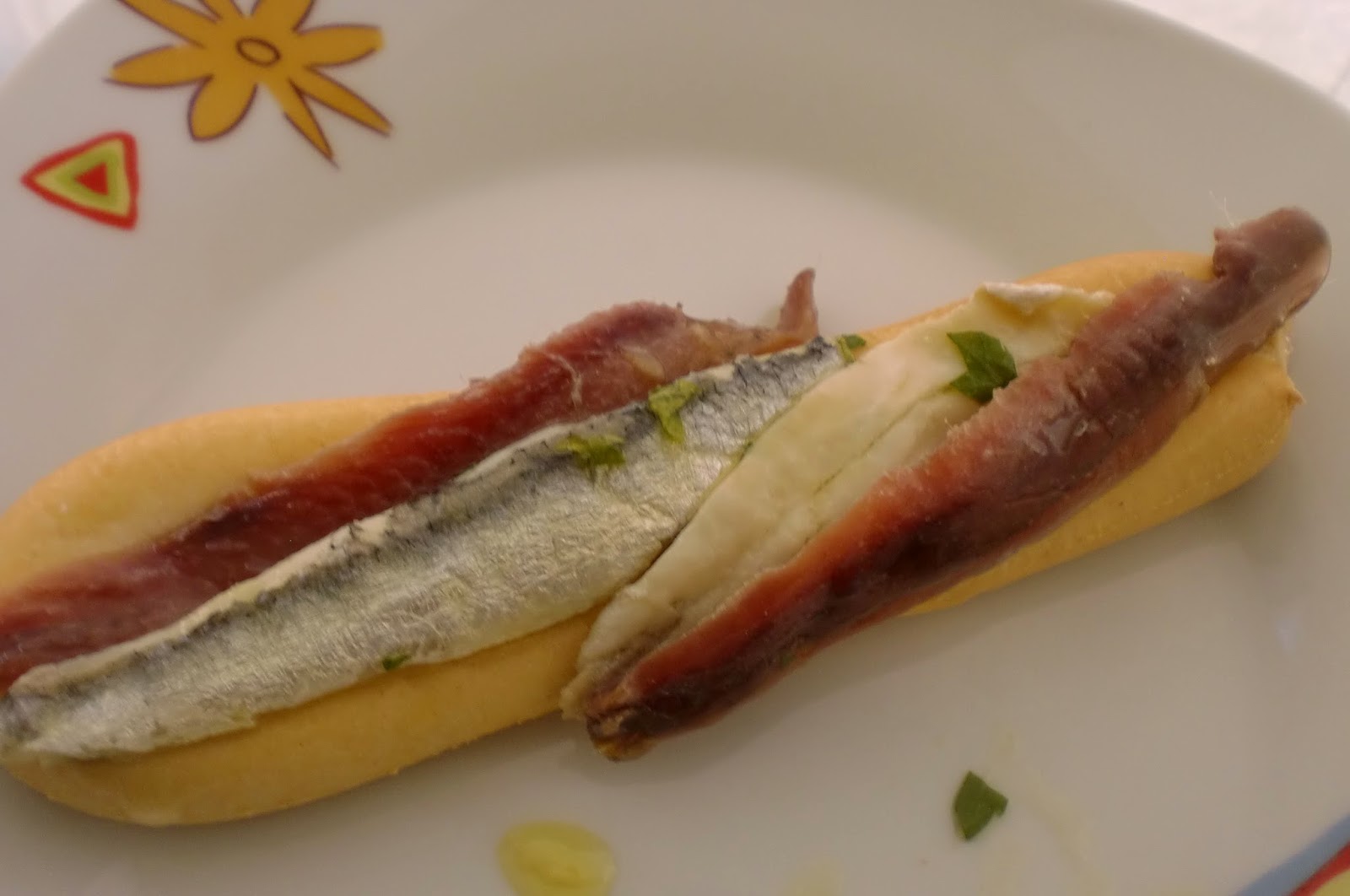 Esta tradicional tapa murciana surge de la unión del boquerón en vinagre con anchoa en salmuera que no son pescados distintos, sino formas diferentes de preparar el mismo pescado ( el boquerón)