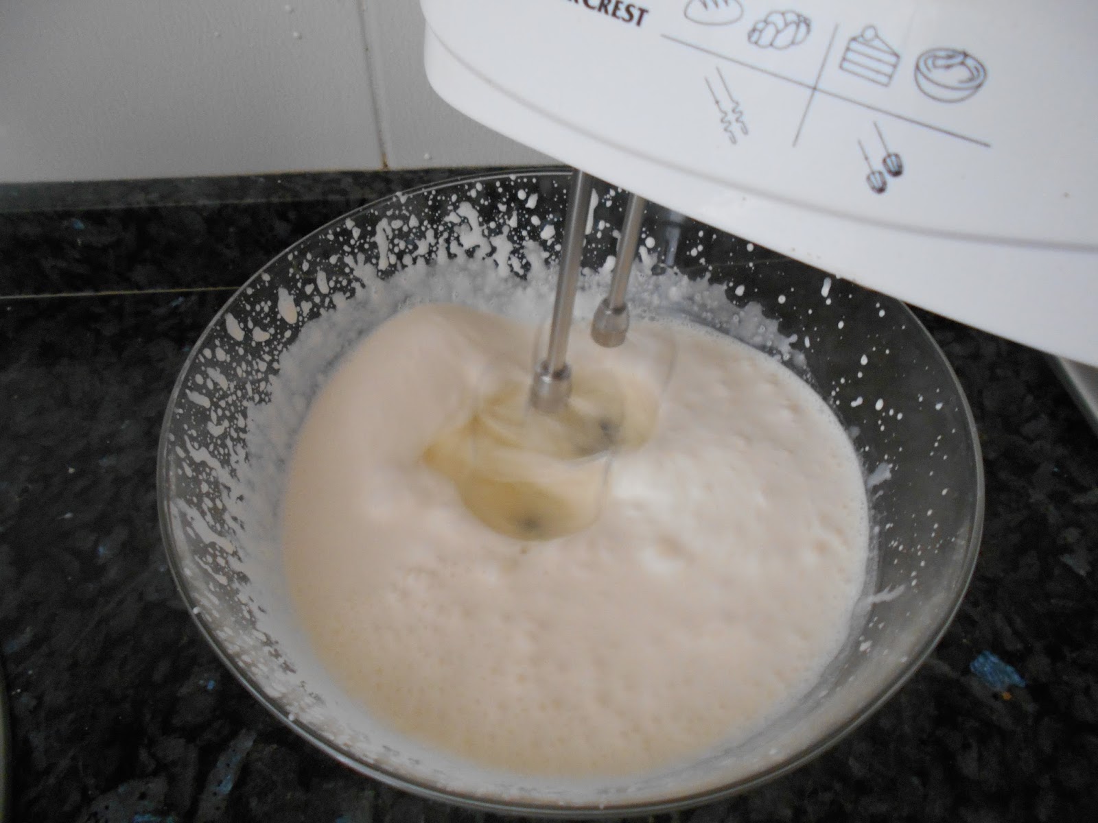 Cuando esté a mitad de montar añadimos el café soluble y el azúcar glass.