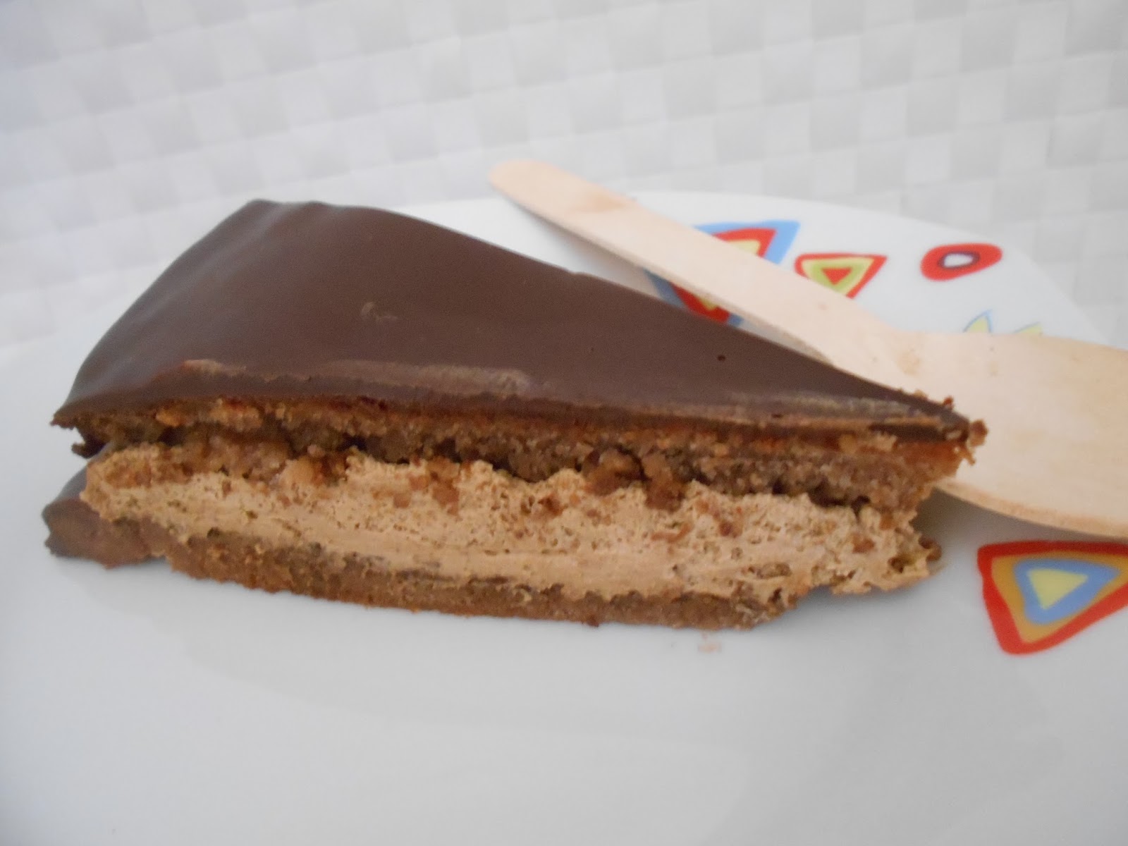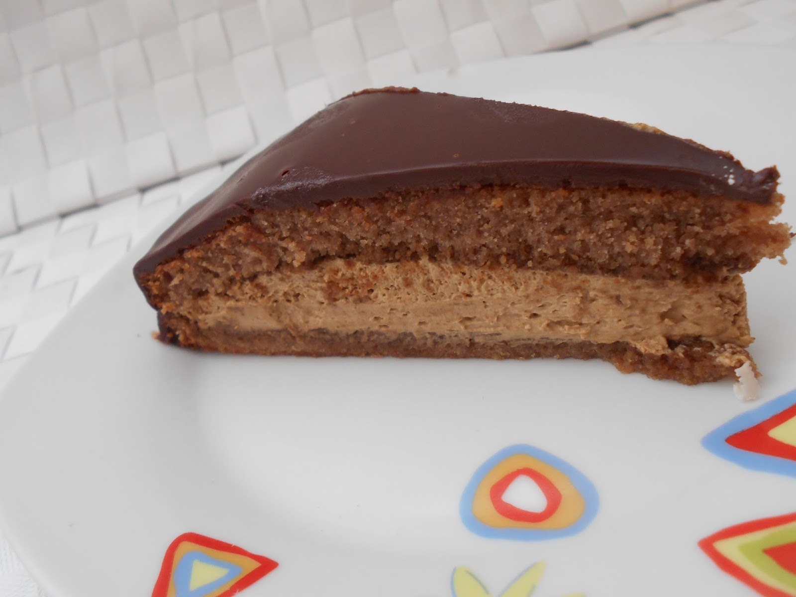 Lleva un bizcocho humedo de chocolate y café y va rellena de mousse de café y terminada con una cobertura de chocolate negro... ¿tentadora verdad?