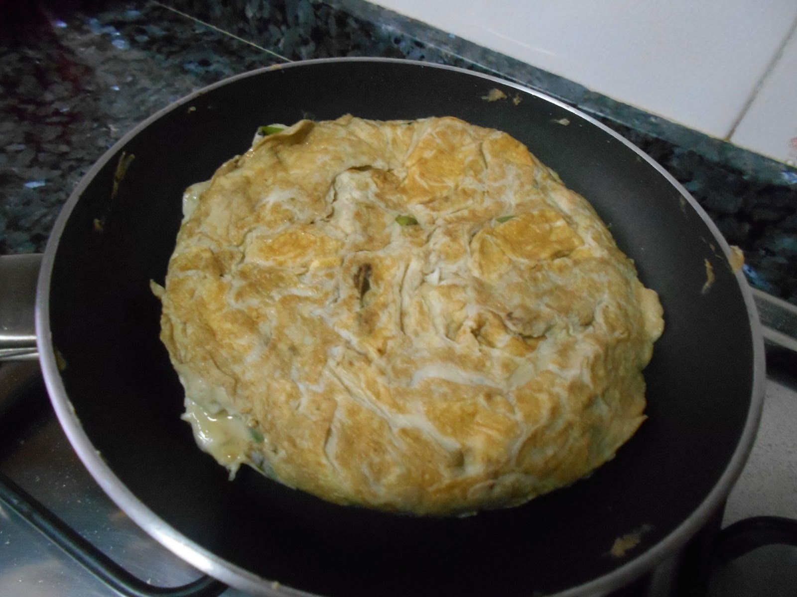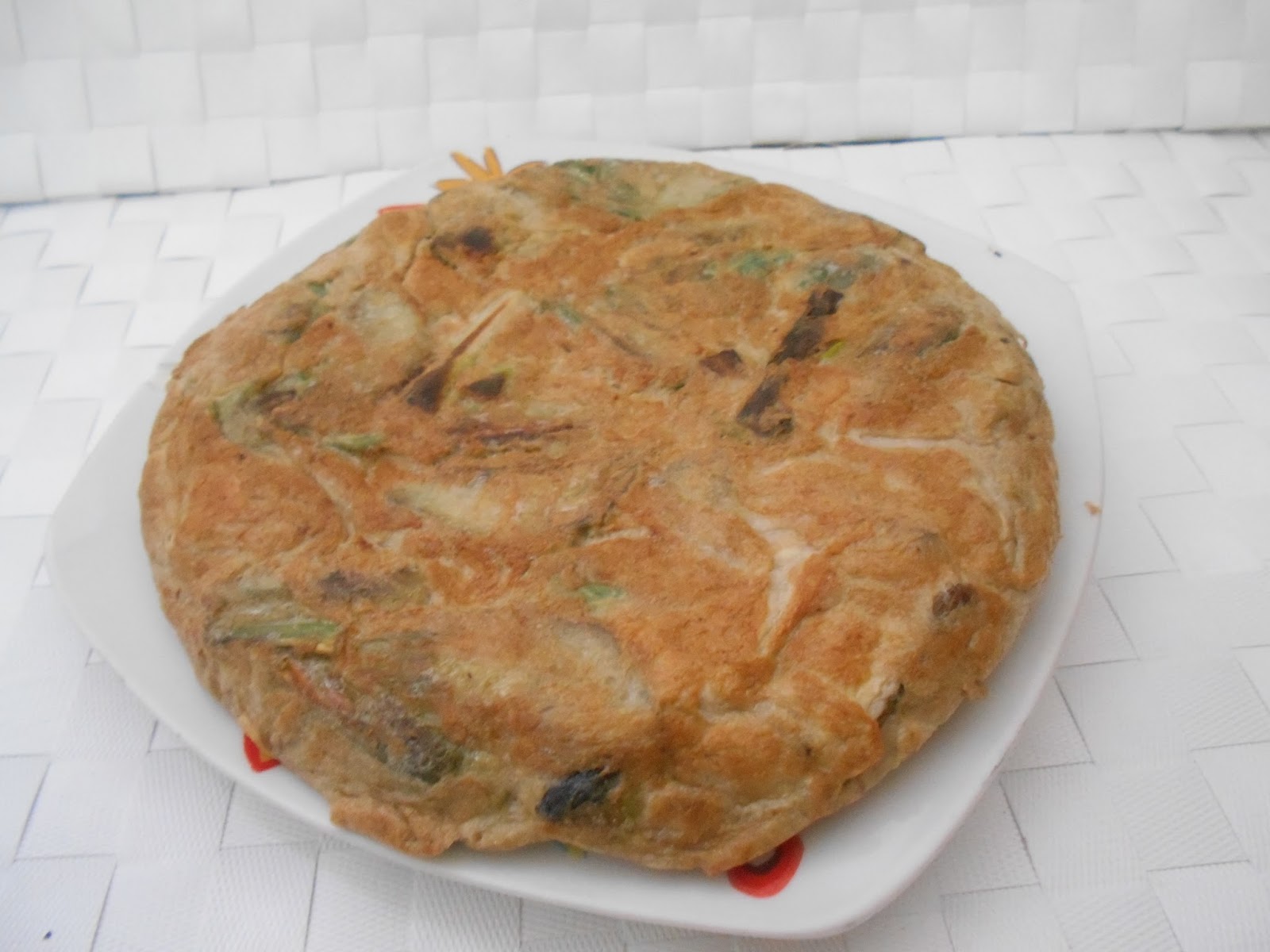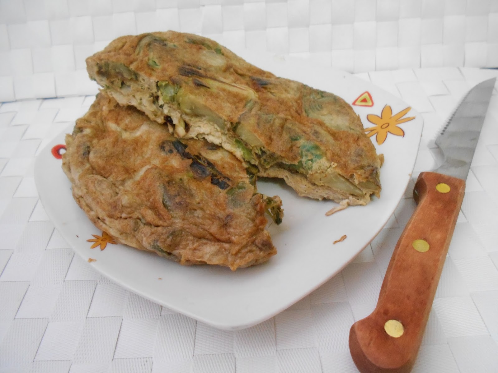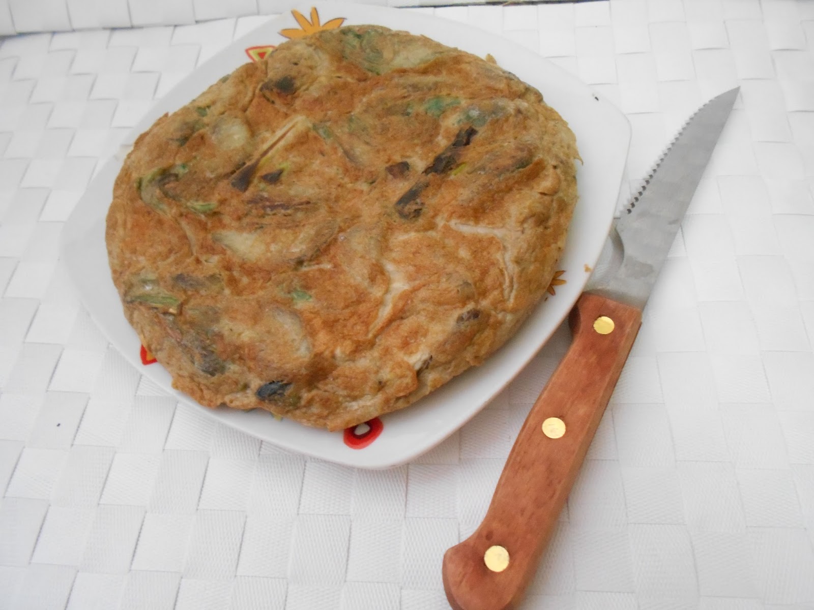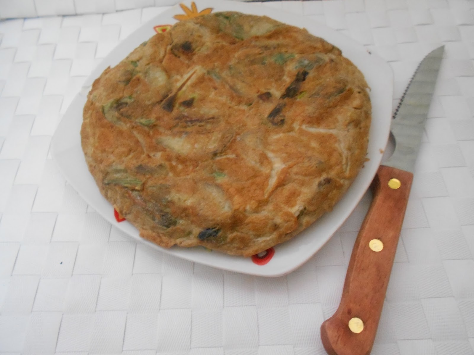 TORTILLA DE ALCACHOFAS Y AJOS TIERNOS