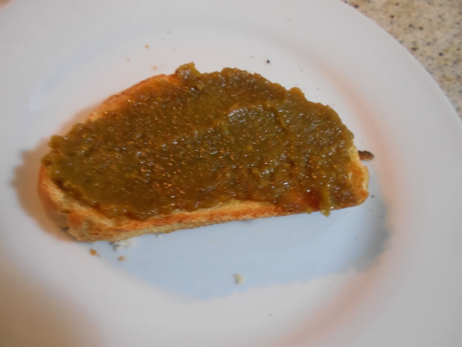 Untamos la confitura de oliva en el pan.