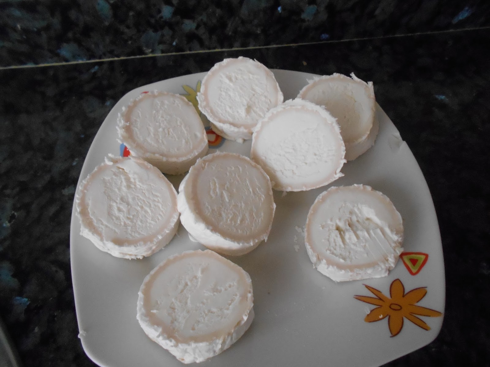 Cortamos el rulo de queso en trozos.