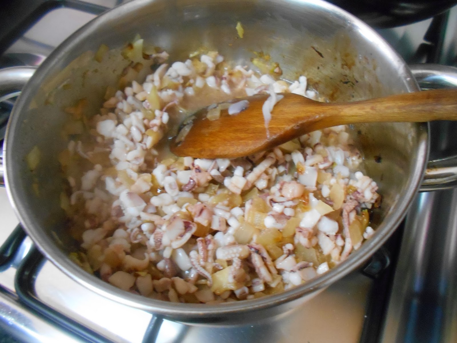 Añadimos las alas y los tentaculos de los calamares (que habiamos reservado) bien picaditos.